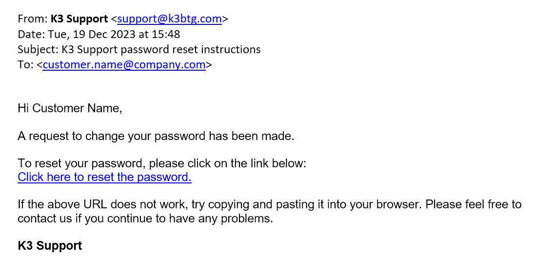Password Reset Email