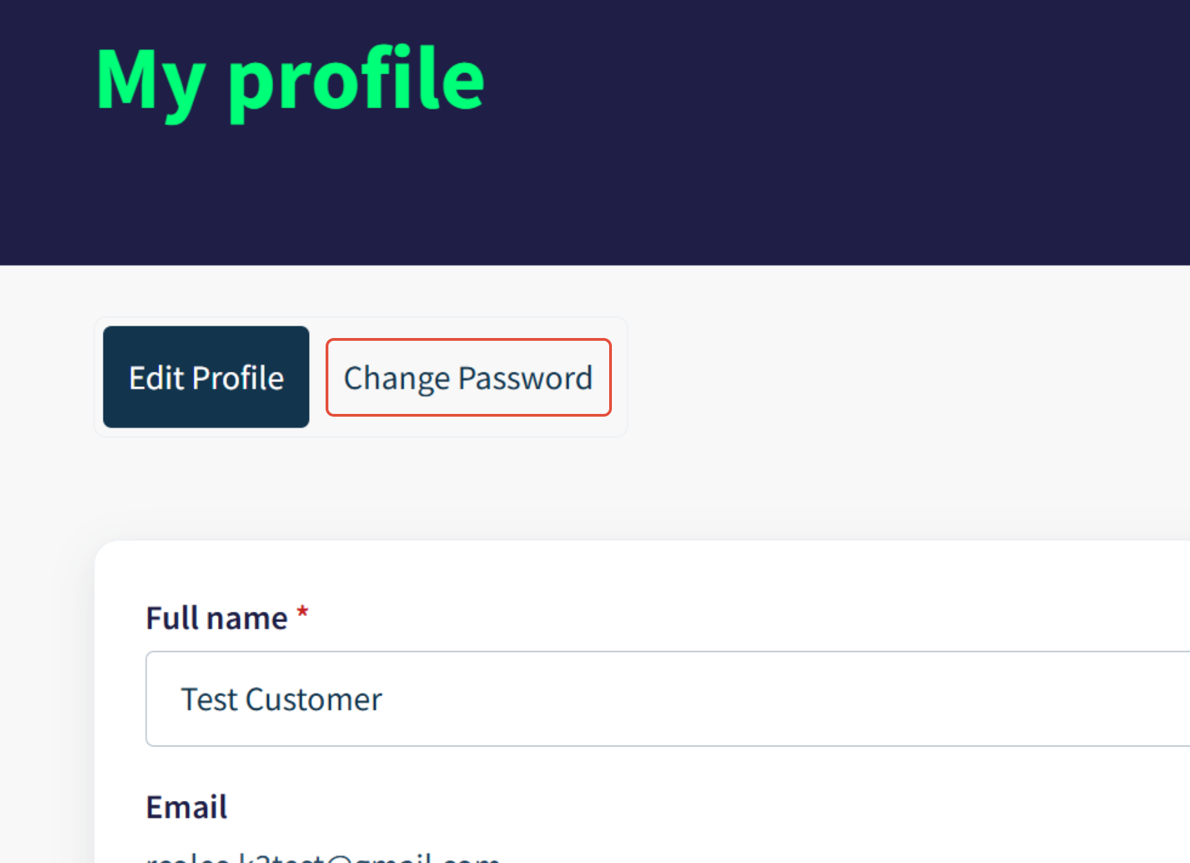 - Click on the "Change Password" button/tab (you'll be asked to enter your current password as well as your new one)